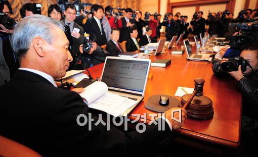 [아시아경제 윤동주 기자] 11일 오전 서울 남대로 한국은행 본관에서 이성태 총재가 퇴임하기전 마지막으로 주재하는 금융통화위원회에 참석해 회의를 주재 하고 있다.
