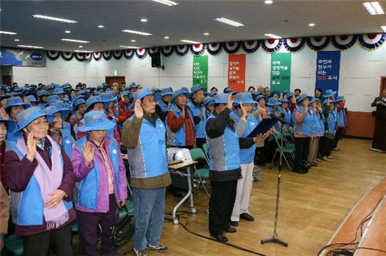 2010 노인일자리사업 발대식에서는 참여자들이 봉사하는 마음으로 성실하게 임할 것을 다짐하는 선서문 낭독으로 참여 결의를 새롭게 다진다.