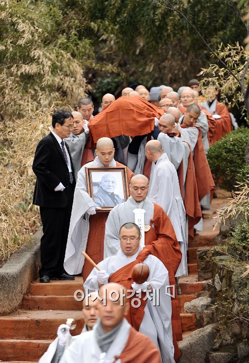 [아시아경제 이재문 기자] 법정스님 입적 이틀째인 12일 오전 서울 성북동 길상사 행지실에서 법구가 다비식을 위해 전남 순천에 있는 송광사로 운구 되고 있다.
