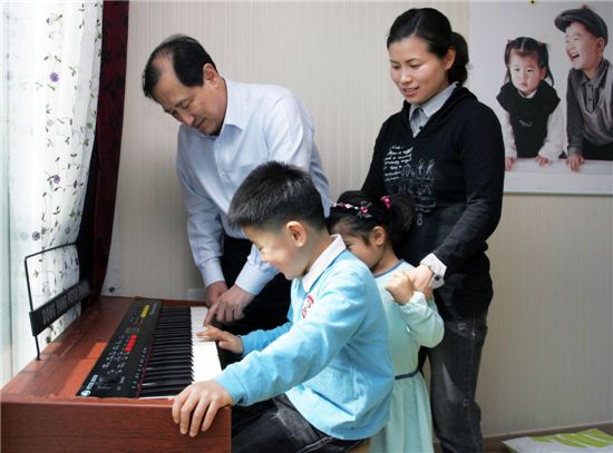 이 부회장은 입학선물에 대한 감사의 편지들 중, 독특하게 피아노 연주를 들려드리고 싶다는 사연을 보낸 광주 엑세스(Access)망 운영팀 곽태영 과장의 가정을 깜짝 방문하였다.