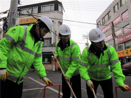 첫 번째로 참여한 단체는 메리츠증권 신입사원 26명이 지난 12일 새벽 환경미화원과 함께 가로청소의 구슬땀을 흘렸다.