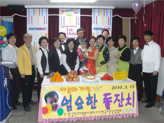 13일 오후 금천구 자원봉사센터 중국인 엄마와 함께 거주하는 요한 군 돌 잔치 마련