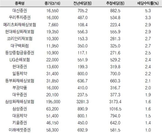 [아시아경제 박선미 기자]SK증권은 17일 3월 결산법인 배당 시즌을 앞두고 증권주 배당 투자 매력이 상대적으로 부각되고 있다며 요즘과 같은 박스권 장세 틈새전략으로 활용할 필요가 있다고 밝혔다.