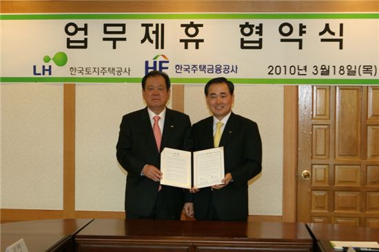 [아시아경제 이현정 기자]한국주택금융공사는 18일 경기도 분당 정자동 본사에서 한국토지주택공사와 서민 주거안정 지원을 강화하기 위한 포괄적 업무협약을 체결하였다고 밝혔다.