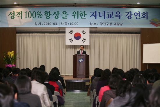 [아시아경제 박종일 기자]정송학 광진구청장이 19일 오전 10시 구청 대강당에서 진행된 '성적 100% 향상을 위한 자녀교육 강연회'에서 인사말을 하고 있다.이날 강연회에는 학부모 500여명이 참석해 자녀교육에 대한 뜨거운 열정을 보여줬다.