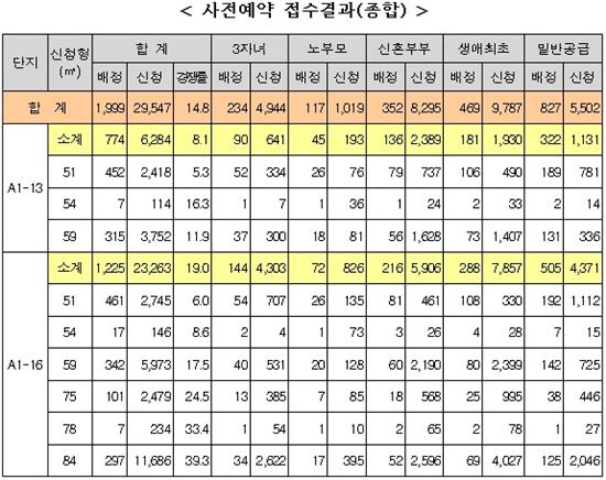 먼저 3자녀 특별공급은 배정물량 234가구에 4944명이 신청해 평균 21.1대1의 경쟁률을 나타냈다.