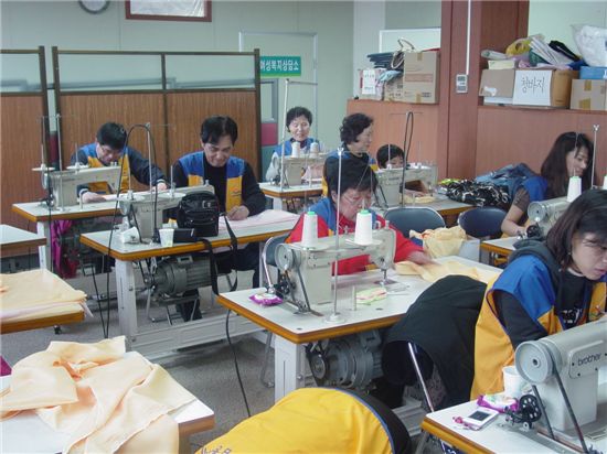 그 첫 번째 프로그램은 재활용(Recycling)을 테마로 자원봉사동아리팀 봉사자 20여명이 모여 평소 모아온 헌옷, 재고옷감과 폐현수막 등을 재활용해 신발주머니 방석 앞치마 등을 만드는 행사를 지난 8, 9일 이틀에 걸쳐 가졌다.