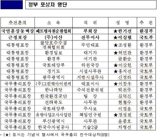 또한 한기선 페트병자원순환협회 부회장에게 국민훈장이 수여되는 등 물관리에 공이 큰 민간인과 공무원 16명에 대해 정부포상이 실시될 예정이다.