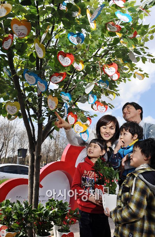 [아시아경제 이재문 기자] 결핵 예방의 날을 사흘 앞둔 21일 오후 서울광장에서 열린 '결핵퇴치 희망나무' 행사에서 시민들이 희망 메시지를 나무에 걸고 있다.