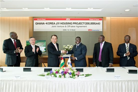 가나에서도 자원개발 사업을 위해 현지로 간 강 회장은 가나 정부로부터 주택 건설이 더 시급하다는 요청을 받았다. 다른 기업들은 어럽다고 본 반면 강 회장과 STX그룹은 할 수 있는 방법을 찾아냈고, 이는 곧 본계약으로 이어졌다.