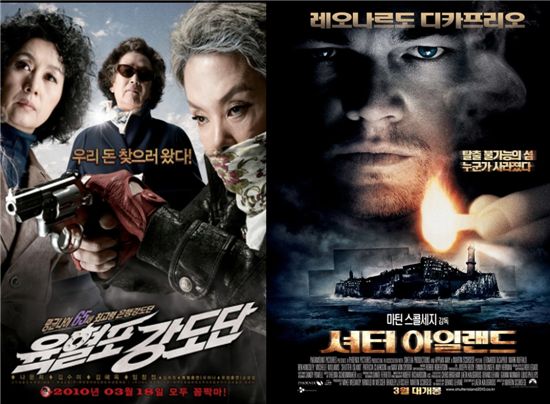 '육혈포 강도단'의 24일까지 누적 관객수는 40만 373명이고, '셔터 아일랜드'는 이날까지 48만 2344명을 모았다.
