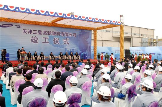 제일모직은 지난 24일 중국 톈진시 서청경제개발구에 위치한 톈진산싱(天津三星'TSEP)법인에서 황백 사장과 왕바오띠 서청구 당서기, 주지아비아오 구청장 및 임직원 등 300여명이 참석한 가운데 ABS,EP 컴파운딩 공장 준공식을 가졌다고 25일 밝혔다.