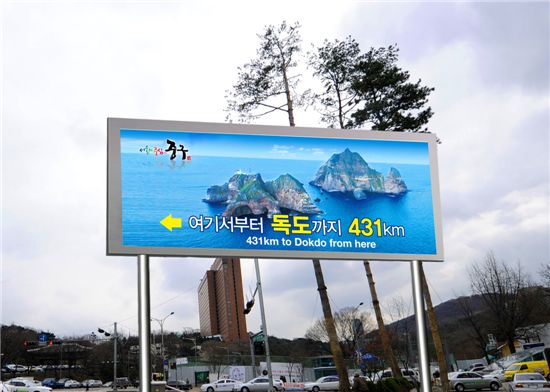 특히 '여기서부터 독도까지 431km'라는 문구를 한글과 영문으로 표기하여 내국인은 물론 외국인까지 알 수 있도록 했다.