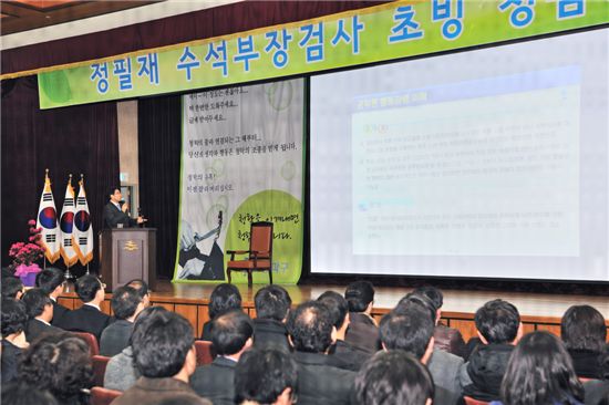 정필재 수석부장검사는 이날 약 1시간에 걸쳐 공무원 행동강령 위반사례들을 중심으로 사건 현장에서 있었던 경험담들을 이해하기 쉽게 풀어놓았다.