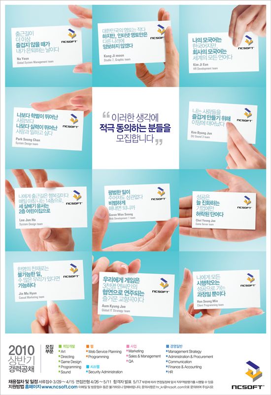 엔씨소프트 구현범 인사 담당 상무는 "세상 사람들을 더욱 즐겁게 만드는 엔씨소프트의 미션에 동참할 수 있는 열정과 능력을 가진 인재들의 적극적인 지원을 기대하고 있다"고 밝혔다.