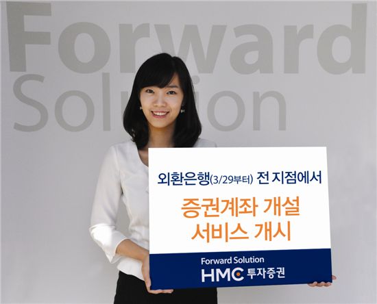 [아시아경제 박선미 기자]HMC투자증권은 고객 편의성 제고를 위해 외환은행과 업무제휴를 체결, 29일부터 외환은행 전 지점에서 증권계좌 개설 서비스를 시행한다고 26일 밝혔다.