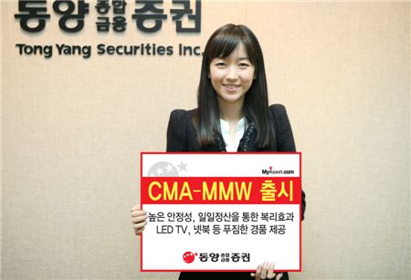 [아시아경제 임철영 기자]동양종금증권(www.MyAsset.com)은 한국증권금융 예수금 등으로 운용하는 초단기 금융상품인 CMA-MMW를 출시, 오는 5월31일까지 가입고객을 대상으로 다양한 경품을 제공하는 이벤트를 진행한다고 30일 밝혔다.