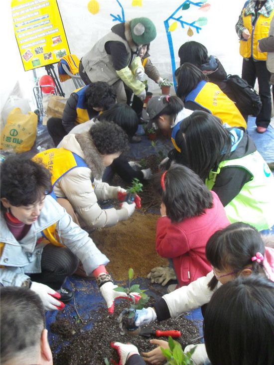 이 프로그램은 숲지기강지기 강사와 자원봉사자들의 안내 아래 페트병에 마사토 등 흙을 채우고 허브 등 식물을 참여자들이 직접 심어 보는 것을 통해 자원의 순환과 환경의 소중함을 체험하게 했다.