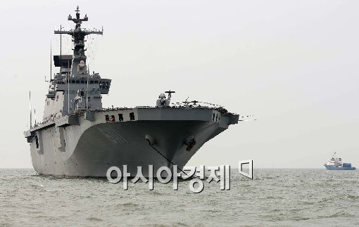 [아시아경제 이재문 기자] 침몰사고 닷새째인 30일 오전 인천 옹진군 백령도 침몰사고해역에서 아시아 최대 수송함 '독도함'이 현장지원을 하고 있다.