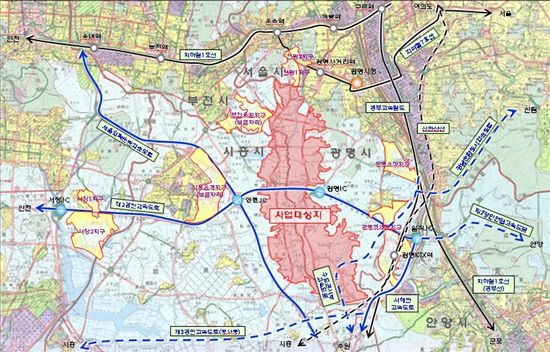 ◇대거 확충되는 교통망.. 대표 신도시 거듭날듯= 광명시 인근에는 광역교통망이 대거 확충될 전망이다. 이번에 정부가 이 지역을 신도시 규모로 지구지정을 하게 된 것은 사통팔달의 교통망을 통해 원활한 교통흐름이 보장될 수 있을 것이란 기대가 작용했기 때문으로 분석된다.