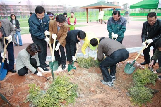 [아시아경제 박종일 기자]영등포구(구청장 김형수)는 제65회 식목일을 맞아 2일 오후 2시부터 6시까지 영등포공원 일대에서 구청공무원과 기간제근로자 100여명이 참여한 가운데 철쭉류와 회양목 4500여그루를 심는 행사를 가졌다.