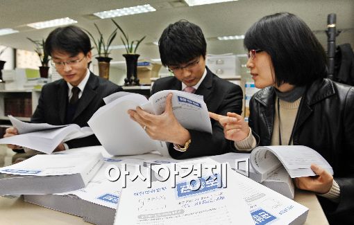 [아시아경제 이재문 기자] 2일 오전 서울 세종로 정부중앙청사에서 행정안전부 직원들이 공직자윤리법 제10조의 규정에 따라 관할 재산공개대상자인 국가 정무직, 고위공무원단 가등급 등 공직자 1천851명의 2010년도 재산변동신고내역 관보를 살펴보고 있다.