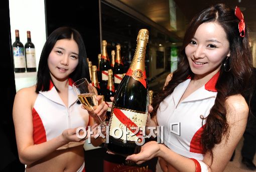 [아시아경제 이재문 기자] 롯데백화점이 4일 오전 서울 소공동 본점에서 F1 코리아 그랑프리 공식 샴페인 '코르동 루즈'를 선보이고 있다.