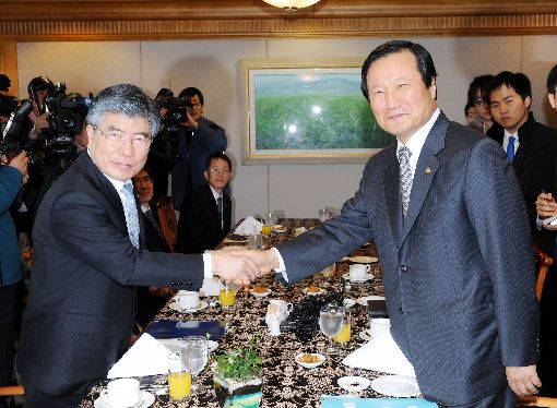 $pos="C";$title="윤증현 김중수";$txt="";$size="510,375,0";$no="201004050852002288260A_1.jpg";@include $libDir . "/image_check.php";?>[아시아경제 이규성 기자]윤증현 기획재정부 장관과 김중수 한국은행 총재가 5일 오전 상견례를 겸한 간담회를 가졌다.