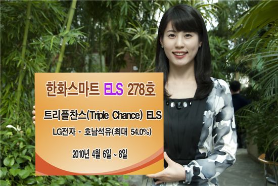 '한화스마트ELS 278호'는 LG전자와 호남석유를 기초자산으로 하는 트리플찬스 스텝다운 (Triple Chance StepDown)형 ELS로 3년 만기로 운용되고, 매 4개월마다 조기상환조건이 충족되면 최대 54.0% (연18.0%)의 수익이 지급되는 상품이다.