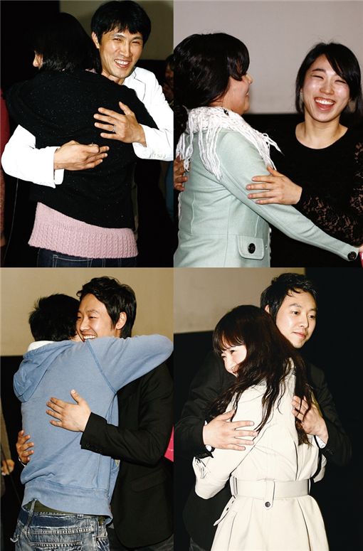 유오성은 나이가 지긋한 할머니 관객과 따뜻한 프리 허그를 했고, 극중 쭈꾸미 역으로 코믹 캐릭터를 보여준 이미도는 블랙 원피스로 멋을 낸 차림으로 등장해 영화 속과는 전혀 다른 모습으로 우아하고 따뜻하게 프리 허그에 동참했다.