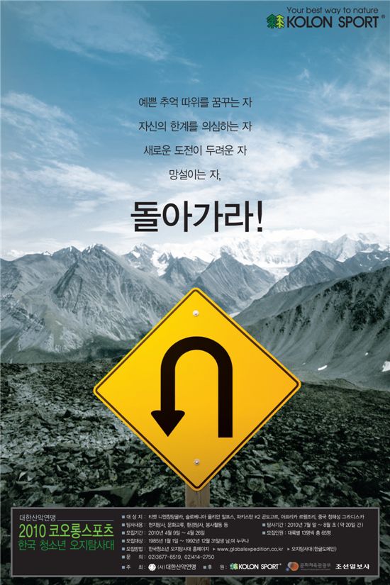 [아시아경제 최대열 기자]코오롱스포츠는 오는 7월 활동할 2010 한국청소년 오지탐사대 대원을 모집한다고 7일 밝혔다.