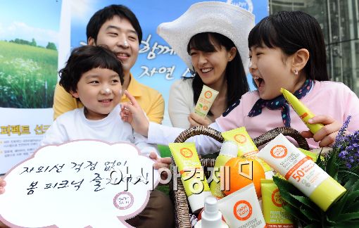 [아시아경제 이재문 기자] 아모레퍼시픽 토탈 바디케어 전문 브랜드 해피바스가 8일 오전 서울 세종로 사거리에서 유기농 성분으로 자극을 최소화한 자외선차단제 '선케어 라인' 7종을 선보이고 있다.