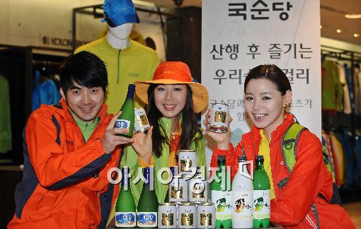 [아시아경제 이재문 기자] 본격적인 등산철을 맞아 국순당이 8일 서울 무교동 조이코오롱 매장에서 ‘국순당 캔 막걸리’를 증정하는 행사를 진행하고 있다. 이번행사는 10~11일 북한산, 도봉산, 남한산성, 검단산 등 코오롱스포츠 매장을 방문하는 등산객 중 선착순 300명에게 증정된다.