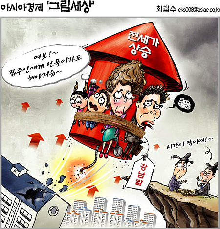 [아시아경제 황준호 기자] 보금자리주택에 수요가 대거 집중되고 금융 규제등 시장 규제책이 지속 적용되면서 집값이 하락하자, 전세 수요가 늘어나는 수순이다. 4~5월 봄철 결혼 수요까지 겹치면서 전세가는 지속적인 상승세를 이어가고 있다.