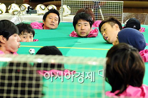 [아시아경제 이기범 기자]개그콘서트 팀과 드림팀이 11일 오후 경기도 안산시 한양대학교에서 진행된 KBS2 '출발 드림팀 시즌2' 촬영에 임하고 있다.