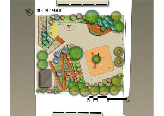 쉼터 어린이 공원은 ‘아낌없이 주는 나무’를 주제로 약 5800그루의 수목을 심으며 나무조합 놀이대, 경사놀이벽 등 시설물을 설치한다.