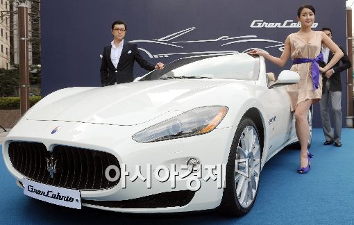 [아시아경제 이재문 기자] 마세라티 공식 수입사 FMK가 13일 오전 서울 광화문 파이낸스센터 광장에서 마세라티 최초의 4인승 컨버터블 모델인 그란카브리오(GranCabrio)를 선보이고 있다.