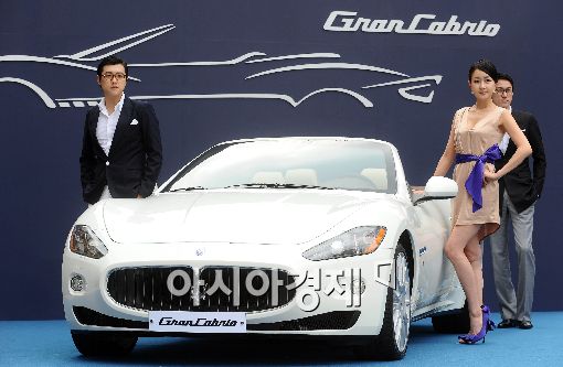 [아시아경제 이재문 기자] 마세라티 공식 수입사 FMK가 13일 오전 서울 광화문 파이낸스센터 광장에서 마세라티 최초의 4인승 컨버터블 모델인 그란카브리오(GranCabrio)를 선보이고 있다.