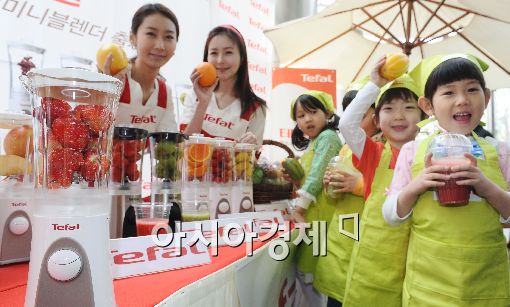 [아시아경제 이재문 기자] 가정용품 전문 브랜드 테팔이 13일 광화문 청계광장 부근에서 '멀티 미니 블렌더'를 출시, 신선한 과일 주스 나누기 행사를 진행하고 있다.