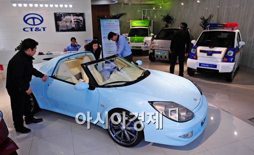 [아시아경제 이재문 기자] 전기차가 일반인 대상으로 판매가 시작된 14일 오전 서울 서초구 CT&T 서울 전시장을 찾은 고객들이 다양한 종류의 전기차량과 전기 컨셉카를 둘려보고 있다.