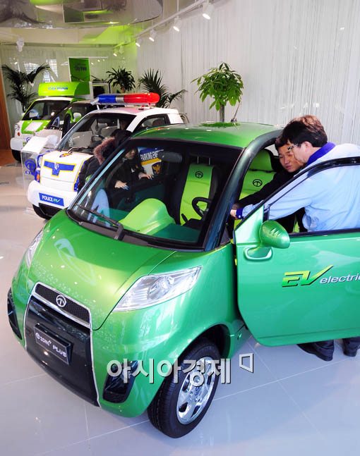 [아시아경제 이재문 기자] 전기차가 일반인 대상으로 판매가 시작된 14일 오전 서울 서초구 CT&T 서울 전시장을 찾은 고객들이 다양한 종류의 전기차량을 둘려보고 있다.