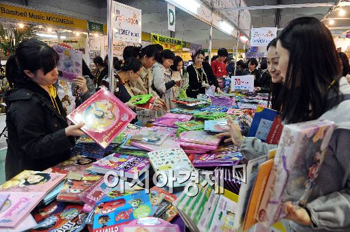 [아시아경제 이재문 기자] 15일 서울 삼성동 코엑스에서 열린 '제22회 서울 국제유아교육전'을 찾은 임산부 및 영유아 학부모들이 할인 학습교재를 살펴보고 있다.