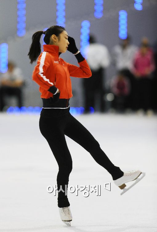 [아시아경제 이재문 기자] 피겨퀸 김연아가 15일 오후 서울 방이동 올림픽공원 체조경기장 특설링크에서 열린 'KCC 스위첸 페스타 온 아이스 2010' 미디어 공개 리허설에서 화려한 연기를 선보이고 있다.
