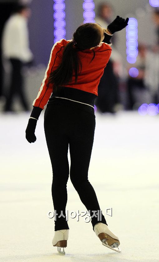 [아시아경제 이재문 기자] 피겨퀸 김연아가 15일 오후 서울 방이동 올림픽공원 체조경기장 특설링크에서 열린 'KCC 스위첸 페스타 온 아이스 2010' 미디어 공개 리허설에서 화려한 연기를 선보이고 있다.