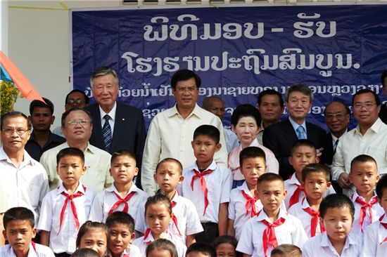 이 회장은 라오스 정부와 지난 2007년과 2008년 두 차례에 걸쳐 체결한 '소외지역 초등학교 건립' 약정에 따라 이날 300개교 학교를 건립했다. 이번에 기증된 학교들에는 총 780만 달러의 예산이 투입됐다.
