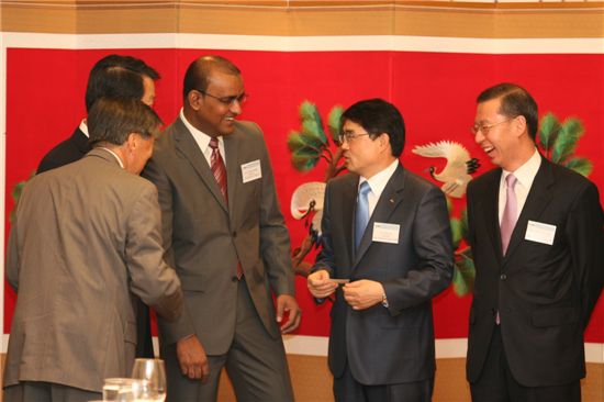 한국수입업협회 회원사 대표 20여명과 가이아나의 바라트 자그데오 대통령이 21일 서울 삼성동 그랜드 인터컨티넨탈호텔에서 만났다. 올 1월 말 수입업협회에서 가이아나로 통상사절단을 파견한 이후 첫 만남이다. 가이아나의 투자진흥청과 수입업협회의 코이마홀딩스와의 긴밀한 협력체계를 구축하기 위한 자리다.