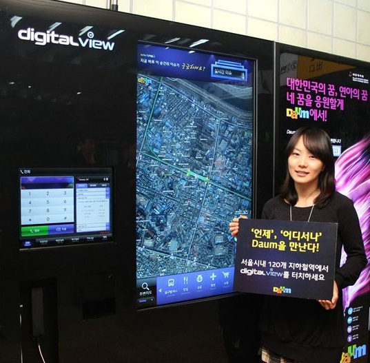 한편 '디지털뷰'는 다음과 핑거터치가 서울 1~4호선 주요 지하철역에 설치한 디지털 영상 시스템으로, 다음의 지도정보는 물론 다음 실시간 이슈 검색어, 뉴스, 스포츠, 날씨, 증권, 환율 등의 실시간 정보와 IP폰(인터넷 전화) 서비스를 제공한다.