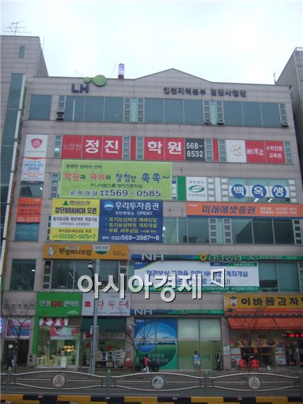 이날 현장 확인 결과 LH 사업단 소재 빌딩에 현대ㆍ대우ㆍ미래에셋ㆍ우리ㆍ농협 등 5개 증권회사, 또다른 시행사인 인천도시개발공사 보상사무소 소재 빌딩에 삼성ㆍ한화증권과 기업은행 등 3개 회사가 입주해 고객 유치에 열을 올리고 있었다.