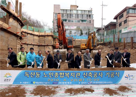 [아시아경제 박종일 기자]금천구(구청장 한인수)는 23일 오후 3시 독산동 노인종합복지관 신축현장에서 주민 등 200여명이 참석한 가운데 독산동 노인종합복지관 기공식을 가졌다.