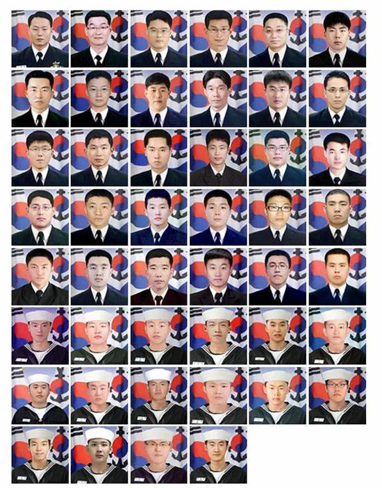 $pos="C";$title="천안함 희생자 사진";$txt="천안함 희생자 46명 사진. (가로 기준 각줄 왼쪽부터) 이창기 원사, 최한권 상사, 남기훈 상사, 김태석 상사, 문규석 상사, 김경수 중사, 안경환 중사, 김종헌 중사, 최정환 중사, 민평기 중사, 정종율 중사, 박경수 중사, 강준 중사, 박석원 중사, 신선준 중사, 임재엽 중사(진급예정), 손수민 하사, 심영빈 하사, 조정규 하사, 방일민 하사, 조진영 하사, 차균석 하사, 박보람 하사, 문영욱 하사, 이상준 하사, 장진선 하사, 서승원 하사, 박성균 하사, 서대호 하사, 김동진 하사, 이상희 병장, 이용상 병장, 이재민 병장, 이상민 병장(1988년생), 이상민 병장(1989년생), 강현구 병장, 정범구 상병, 김선명 상병, 박정훈 상병, 안동엽 상병, 김선호 상병, 강태민 일병, 나현민 일병, 조지훈 일병, 정태준 이병, 장철희 이병";$size="550,703,0";$no="2010042423091834319_1.jpg";@include $libDir . "/image_check.php";?>